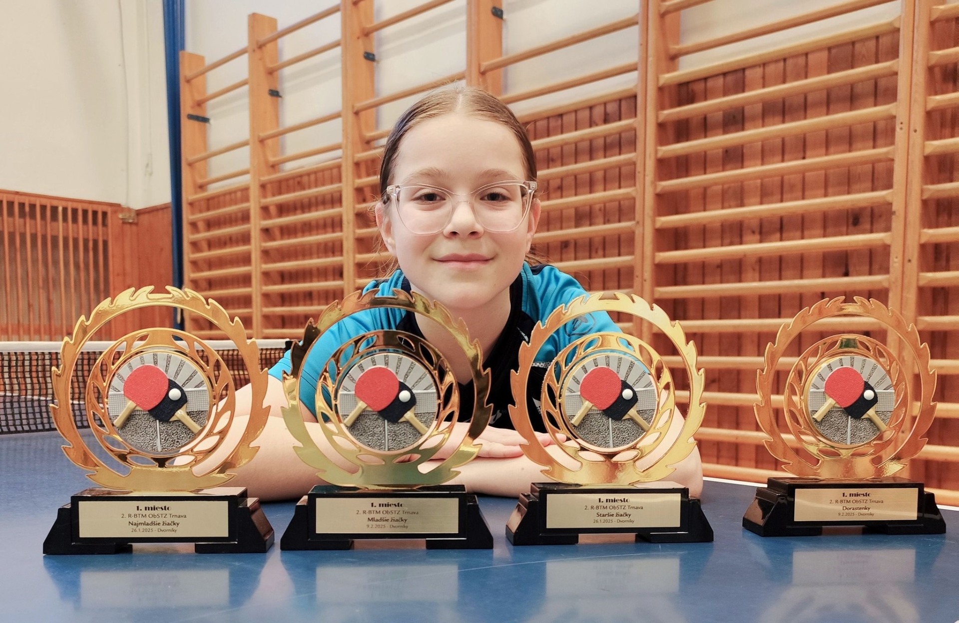 zažili vskutku strhujúce športové popoludnie. Medzi mladými nádejami nechýbala ani Peťka Turoňová, ktorá predviedla svoje nesporné kvality a zaslúžene si odniesla víťazstvo v oboch kategóriách Peťka, odhodlaná a plná energie, sa od začiatku turnaja prezentovala výbornými výkonmi. V každom zápase nechala kus svojho srdca a súperky poriadne potrápila. Jej technika, rýchlosť a precíznosť boli obdivuhodné. Turnaj nebol jednoduchý. Peťka čelila silnej konkurencii talentovaných dievčat, ktoré taktiež túžili po víťazstve. No nevzdala sa a bojovala o každý bod. Jej tréningová drina a talent sa napokon pretavili do zaslúženého úspechu.Víťazstvo je dôkazom toho, že tvrdá práca a vášeň pre šport prinášajú ovocie. "Som veľmi šťastná a vďačná za tieto víťazstvá," povedala Peťka po turnaji. " Toto víťazstvo je pre mňa veľkou motiváciou a budem sa snažiť naďalej zlepšovať. "Peťka v príbehu dvoch týždňov vyhrala všetky kategórie U11, U13, U15 a U19 (viď foto)